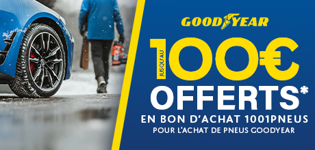 Jusqu’au 01.02 | Jusqu’à 100€ offerts en bon d’achat 1001Pneus pour l’achat de pneus GOODYEAR. Une marque premium reconnue pour sa technologie, sa performance et sa sécurité au quotidien. Voir les conditions.