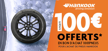 Jusqu’au 29.03 | Optez pour Hankook et recevez jusqu’à 100€ en bon d’achat. Alliez performance, fiabilité et économies avec cette offre exclusive. Ne ratez pas cette occasion de rouler malin ! Voir les conditions.